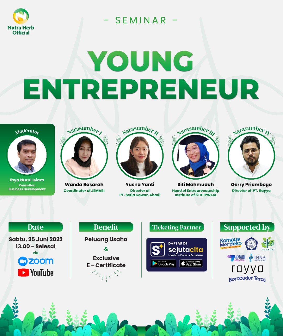 JAKARTA – Kegiatan Seminar “Young Entrepreneur” Batch 1 diadakan pada Sabtu, 25 Juni 2022 Pukul 13.00 WIB oleh NutraHerb Official secara virtual dengan menggunakan platform Zoom dan Youtube. Seminar ini membahas tentang kiat-kiat dan tips bagaimana cara untuk kalian yang ingin terjun dibidang usaha. Dengan dukungan oleh para Narasumber yang […]